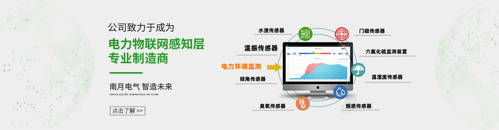 上海南月電氣致力于泛在電力物聯網感知層設備的研發、制造。已形成無線測溫裝置、局部放電在線監測裝置、無線智能除濕裝置、無線溫振一體傳感器、弧光保護裝置、環境在線監測傳感器、六氟化硫在線監測系統等七大核心產品體系,為電力物聯網平臺層提供最好的數據采集設備。